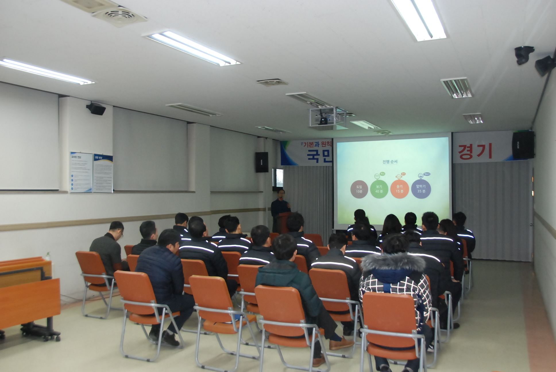 경기도자살예방센터에서는 2018년 2월 7일(수), 2월 20일(화), 2월 21일(수), 2월 27일(화), 3월2(금) 6차례에 걸쳐 약 2시간 동안 도내 경찰 1,000여명을 대상으로 자살예방교육을 진행하였습니다.