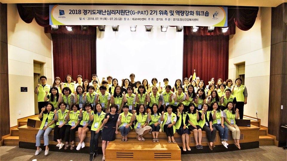 제목 : 2018 경기도재난심리지원단(G-PAT) 2기 위촉 및 역량강화 워크숍 작성자 : 관리자 작성일 : 2018-07-31 조회수 : 22293 2018 경기도재난심리지원단(G-PAT) 2기 위촉 및 역량강화 워크숍이 대교 HRD 연수원에서 있었습니다. 이전글 2017 경기도 정신건강증진사업 해외연수 보고회 및 2018 해외연수 설명회 다음글 경기도 유가족 사업 실무자 지원교육(2차) 목록