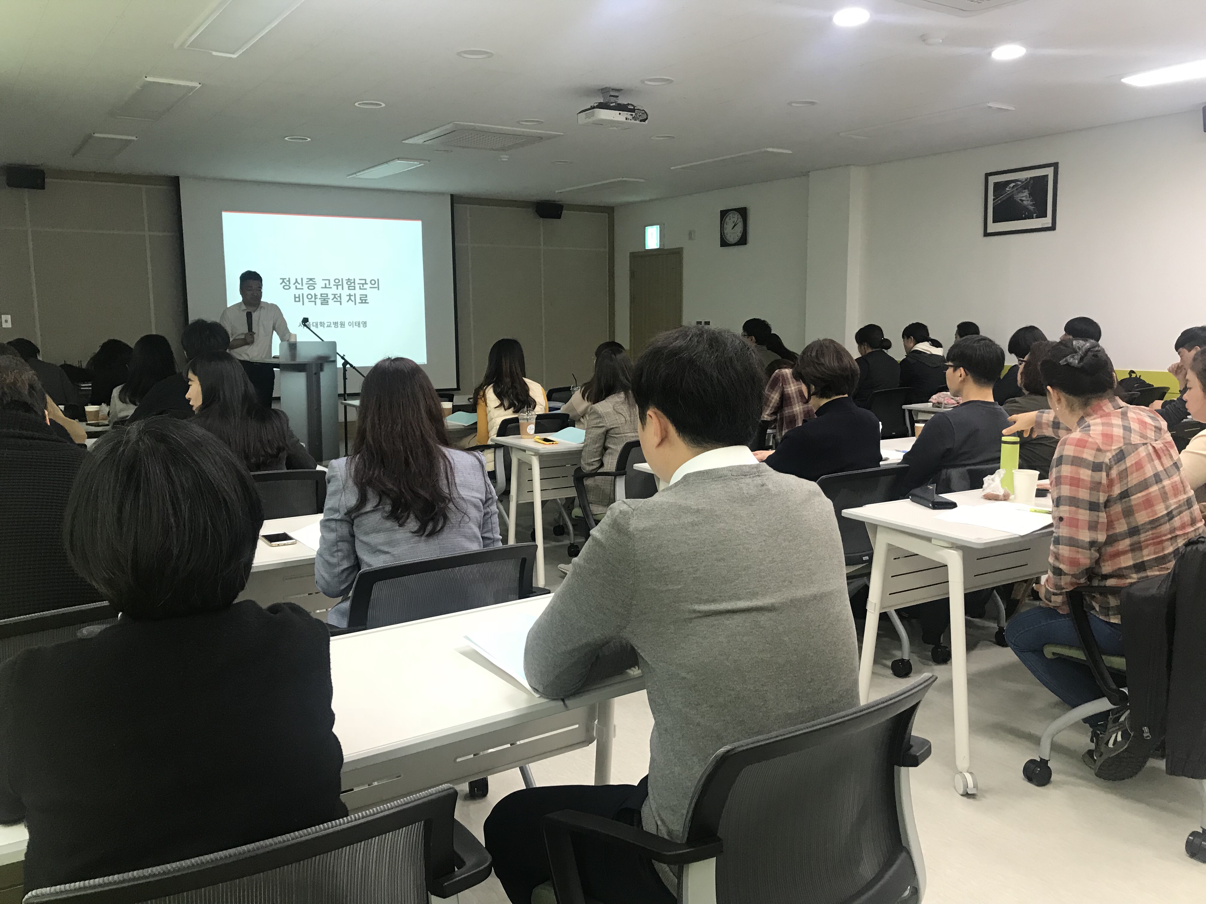 조기정신증 고위험군의 개입과 관련한 체계적인 교육을 위해 서울대학교병원 의생명연구원 이태영 연구교수님을 모시고, 정신증 고위험군 스크리닝, 선별도구, 조기정신증과 정신질환 성격문제 구분, 실제 시행 사례 등으로 교육이 진행되었습니다.