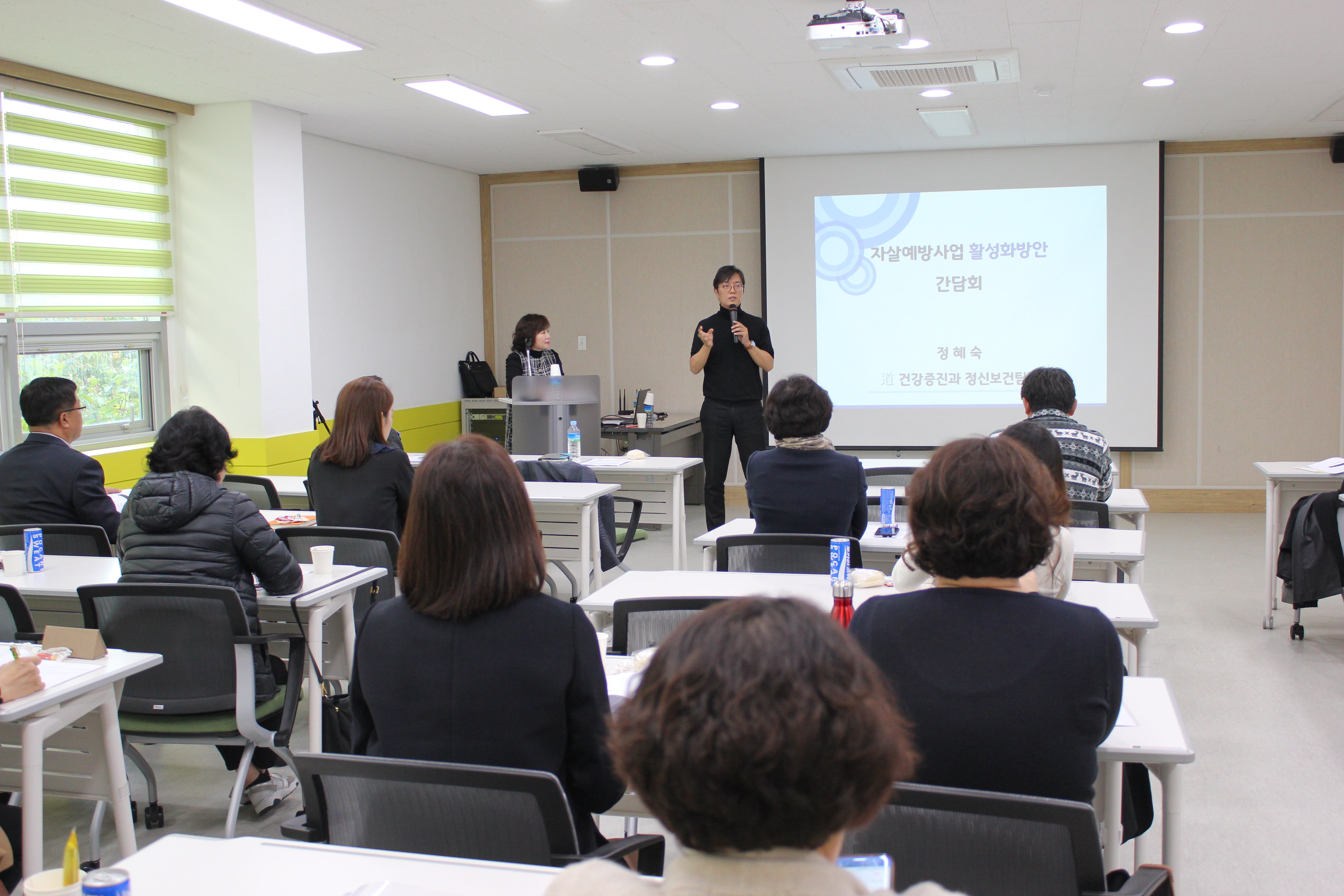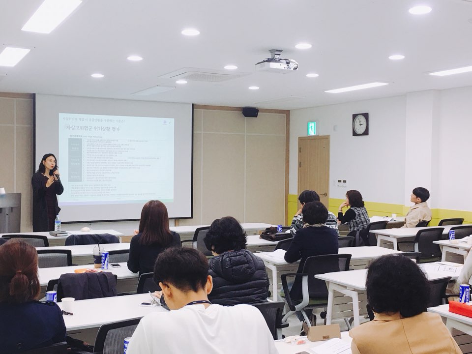 경기도정신건강복지사업지원단에서는 10월 25일에 경기도 내 보건소 정신건강 및 자살예방사업 담당자를 대상으로 교육이 진행되었습니다. 교육 내용으로는 올해 경기도 정신건강사업 중 주요사업인 회복지원사업의 ‘주거전달체계 구축사업’을 중심으로 한 내용과 ‘자살고위험군 대응방법’에 대한 교육을 시행하였습니다. 더불어 추후 원활한 자살예방사업을 위한 방안에 대해서도 논의하는 시간을 가졌습니다. 올해 두 차례로 진행된 보건소 담당자 교육에 참석하여 주셔서 감사드립니다. 앞으로도 경기도에서 추진하고 있는 정신건강&자살예방사업 및 교육이 효율적으로 추진될 수 있도록 많은 관심과 의견 부탁드립니다.