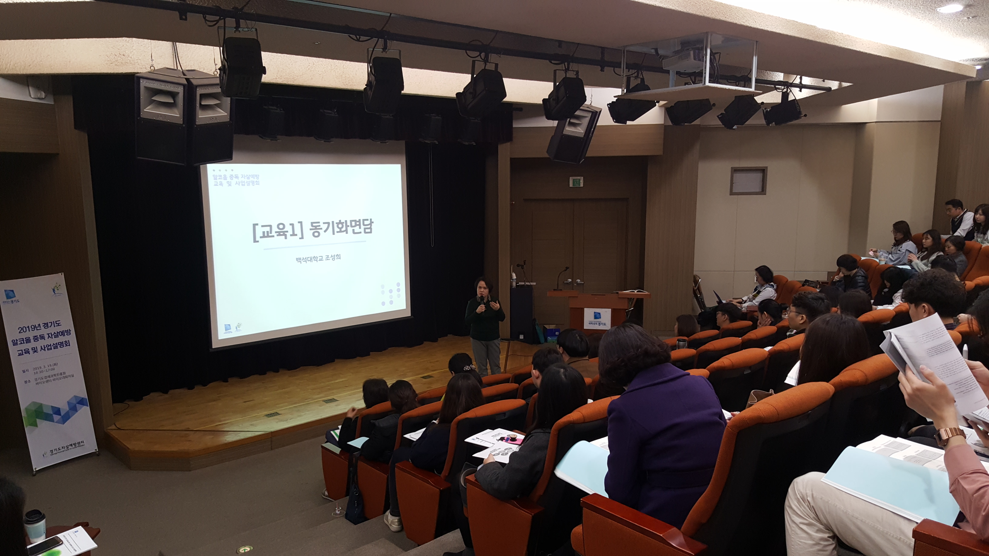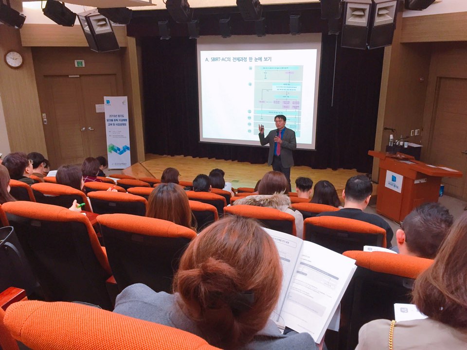 경기도에서는 3월 19일(화) 금일 알코올 중독 자살예방사업의 향후 긍정적인 성과를 마련하기 위한 ‘2019년 경기도 알코올 중독 자살예방 교육 및 사업설명회’를 개최하였습니다. 이번 설명회에서는 그동안의 경기도 자살예방 및 알코올 중독 사업 추진 현황과 2019 경기도 자살예방 시스템, 그리고 올해 경기도에서 적극 추진하고 있는 알코올 중독 자살고위험군에 대한 사례관리 강화 등에 대해 설명하고 알코올 중독 대상자의 전문적 접근을 위해 동기강화, SBIRT(문제성 음주의 선별과 단기개입) 교육도 실시하였습니다. 또한 지역사회 기반 알코올 중독 대상자 자살예방 및 위기대응 안내서 안내와 더불어 현장 실무자의 역량강화를 위한 문제성 음주의 선별과 단기개입 매뉴얼도 배부하였습니다. 알코올 중독 자살예방 교육 및 사업설명회를 통해 활발한 사업 참여를 유도하고 이를 시작으로, 알코올 중독 자살고위험군 발굴 및 조기 개입이 적극적으로 이루어짐으로서 향후 대상자들의 회복에 기여할 것으로 기대합니다.